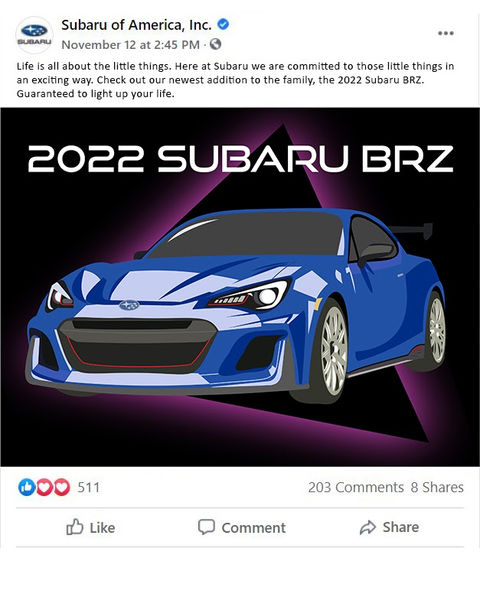 Life is all about the little things. Here at Subaru we are committed to those little things in an exciting way. Check out our newest addition to the family, the 2022 Subaru BRZ. Guaranteed to light up your life.